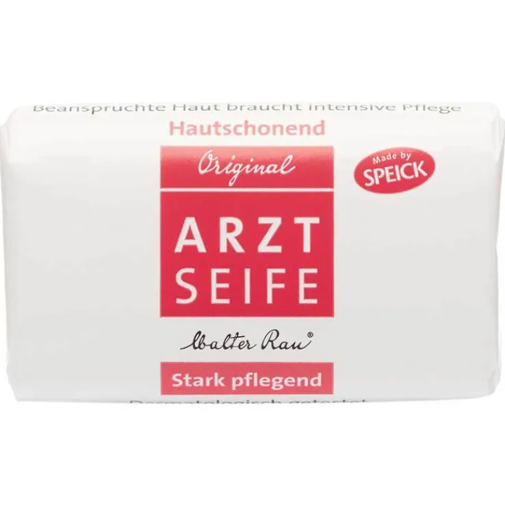 Besonders für häufige Anwendung empfohlene, stark rückfettende Hautpflege-Seife aus kostbaren, reinen Pflanzenölen. Die Seife bietet ganz besonders hautmilde Waschpflege. Auch in kaltem oder lauwarmem Wasser schäumt die Original Arztseife sahnig und fein.