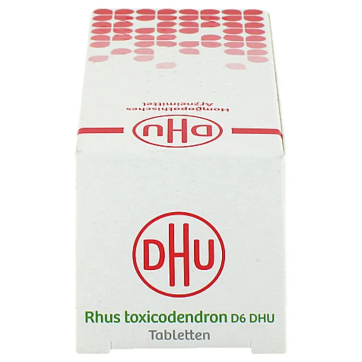 Rhus toxicodendron D6 DHU Enthält Lactose und Weizenstärke. Packungsbeilage beachten! Anwendungsgebiete: Die Anwendungsgebiete entsprechen dem homöopathischen Arzneimittelbild. Dazu gehören: rheumatische Schmerzen in Knochen, Knochenhaut und Gelenken, Sehnen und Muskeln. Zu Risiken und Nebenwirkungen lesen Sie die Packungsbeilage und fragen Sie Ihre Ärztin, Ihren Arzt oder in Ihrer Apotheke. Deutsche Homöopathie-Union DHU-Arzneimittel GmbH & Co. KG, Karlsruhe