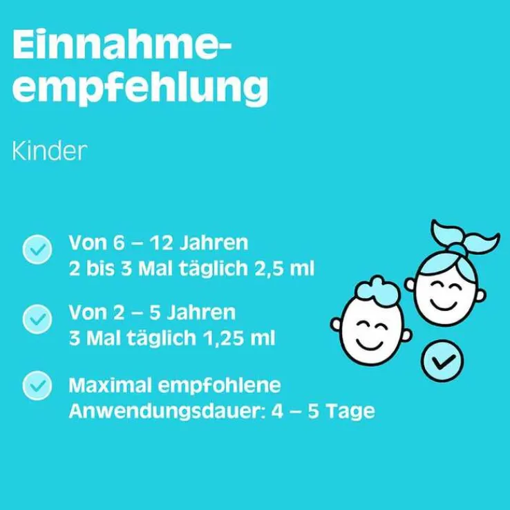 Kinder von 6 bis 12 Jahren: 2- bis 3-mal täglich 2,5 ml