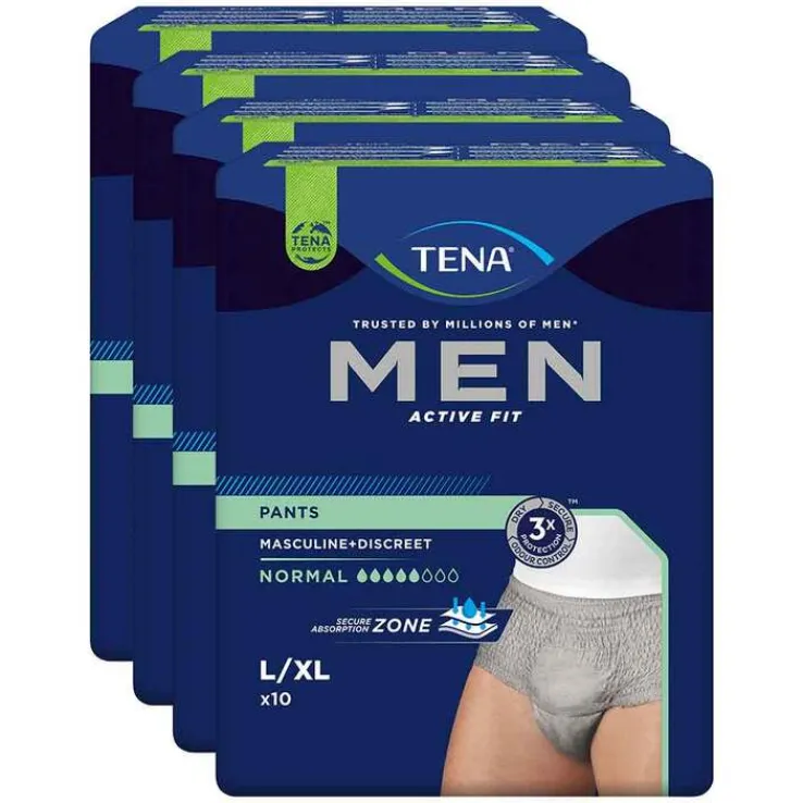 Um Betroffenen weiterhin ein aktives Leben ohne Einschränkungen zu ermöglichen, entwickelt TENA® seit über 50 Jahren innovative Hilfsmittel für einen diskreten und zuverlässigen Schutz. Abgestimmt auf die männlichen Bedürfnisse, wurden TENA® MEN ACTIVE FIT Pants Normal eigens entwickelt und eignen sich mit mittlerer Saugstärke als Auslaufschutz bei mäßigem Harnverlust. Die Einweg-Pants in schlichtem, grauem Design und abgesetztem, elastischem Bund sind wie herkömmliche Unterwäsche gestaltet. Dank flexibler Passform sitzen sie bei jeder Bewegung sicher und bequem.