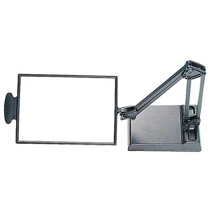 Tischlupe, deren Position sowohl in Höhe als auch in Ausrichtung an die Bedürfnisse des Benutzers angepasst werden kann. Sie kann zum Lesen, Schreiben, Nähen, Sticken und vielem mehr eingesetzt werden. Der Fuß hat ein kleines Tablett, um Schreibutensilien oder kleinere Dinge hineinzulegen.