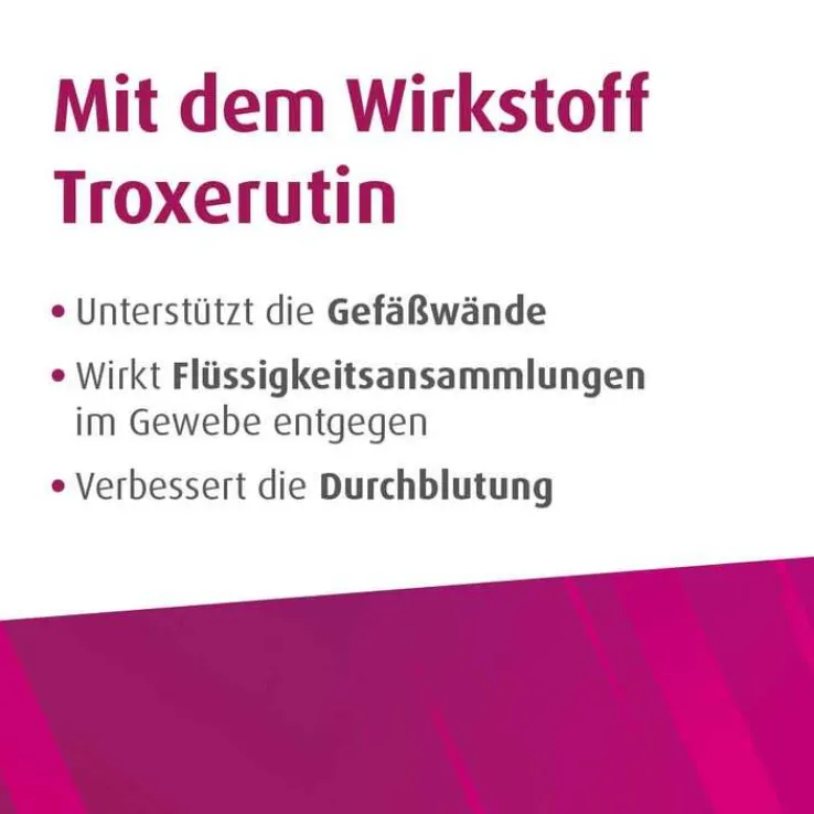 Veno SL® 300. Wirkstoff: Troxerutin. Anwendungsgebiete: Entgegenwirken der Bildung von Ödemen (Ödemprotektivum), Verbesserung der Fließfähigkeit des Blutes, zur unterstützenden Behandlung bei Flüssigkeitsansammlungen im Gewebe (exsudative Prozesse) und zur Stabilisierung von feinen, brüchig werdenden Blutgefäßen (Kapillarfragilität). Zu Risiken und Nebenwirkungen lesen Sie die Packungsbeilage und fragen Sie Ihre Ärztin, Ihren Arzt oder in Ihrer Apotheke. URSAPHARM Arzneimittel GmbH, Industriestraße 35, 66129 Saarbrücken, www.ursapharm.de. Stand: März 2019