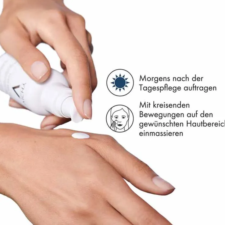 Das Vichy Capital Soleil UV-Age Daily LSF 50+ Anti-Aging Fluid täglich als letzten Schritt der Morgenroutine auf die Haut auftragen. Dafür fünf- bis sechs Pumpstöße aus dem Spender entnehmen und den Sonnenschutz für empfindliche Haut sanft mit den Fingerspitzen auf die empfindlichen Gesichtspartien, wie Nase, Wangen sowie am Hals, auftragen.