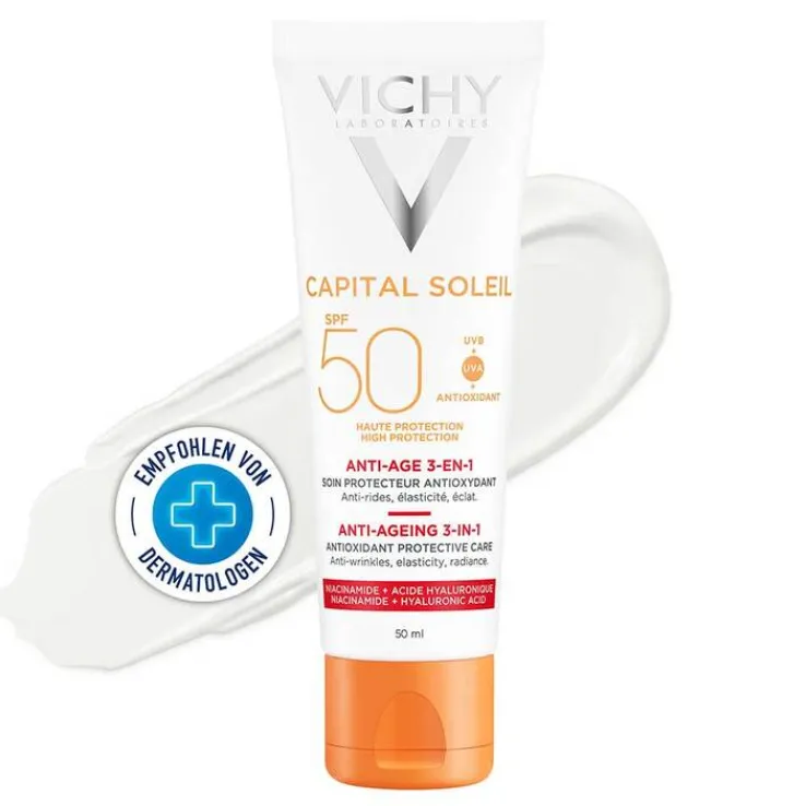 Vichy Ideal Soleil Anti-Age Creme LSF 50 – Anti-Age 3-in-1 Antioxidative Sonnenpflege für das Gesicht