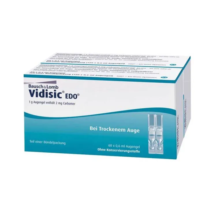 Vidisic® EDO® Wirkstoff: Carbomer. Anwendungsgebiete: Vidisic® EDO® ist ein Tränenersatzmittel. Es wird angewendet als Ersatz der Tränenflüssigkeit bei gestörter Tränenproduktion und zur symptomatischen Behandlung des Trockenen Auges. Warnhinweise: Arzneimittel für Kinder unzugänglich aufbewahren! Enthält Phosphate. Packungsbeilage beachten. Apothekenpflichtig. Zu Risiken und Nebenwirkungen lesen Sie die Packungsbeilage und fragen Sie Ihre Ärztin, Ihren Arzt oder in Ihrer Apotheke. Dr. Gerhard Mann chem.-pharm. Fabrik GmbH, Brunsbütteler Damm 165-173, 13581 Berlin. (Stand: September 2016)