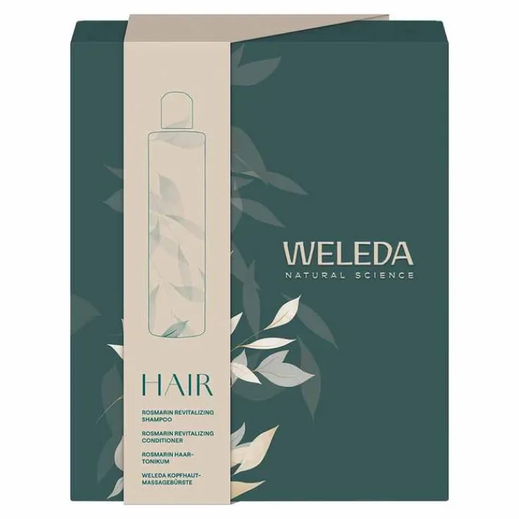 - Set-Inhalt: Rosmarin Revitalizing Shampoo 250 ml, Rosmarin Revitalizing Conditioner 150 ml, Rosmarin Haar-Tonikum 100 ml + Gratis Weleda Kopfhaut-Massage-Bürste
