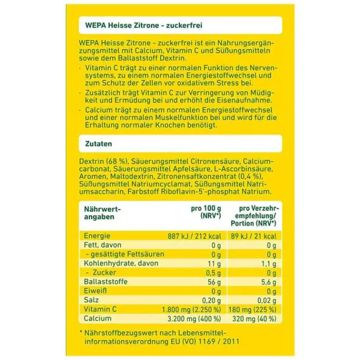 Wepa heiße Zitrone + Vitamin C + Calcium zuckerfrei Pulver
