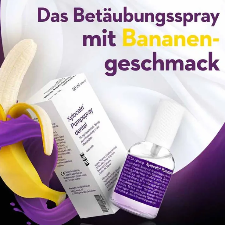 Xylocain® Pumpspray dental. Wirkstoff: Lidocain. Anwendungsgebiet: Zur oberflächlichen Betäubung im Bereich der Mundhöhle. Warnhinweise: Enthält 28,9 Vol.-% Alkohol. Zu Risiken und Nebenwirkungen lesen Sie die Packungsbeilage und fragen Sie Ihre Ärztin, Ihren Arzt oder in Ihrer Apotheke. Aspen Germany GmbH
