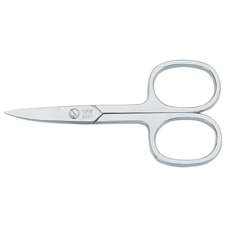 Die vernickelte YES Nagelschere mit gebogener Schneide eignet sich perfekt zum sicheren Kürzen der Nägel.
