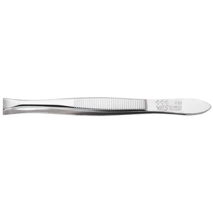 Die vernickelte YES Pinzette ist ein vielseitiger kleiner Helfer für die Gesichts- und Körperpflege. Die Greiffläche der Pinzette ist exakt aufeinander ausgerichtet, denn jede einzelne Pinzette wird fachmännisch haarfassend geschliffen. Die breite Greiffläche ermöglicht das schnelle und präzise Zupfen einzelner oder mehrerer Augenbrauen-Härchen. Hergestellt ist die YES Pinzette aus Spezialstahl.