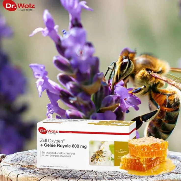 Die Kombination der bewährten Enzym-Hefezellen Dr. Wolz mit Gelee Royale und ausgewählten B-Vitaminen ergibt ein kraftvolles Energiepaket. Gelée Royale ist das einzigartige Nährkonzentrat, von dem die Bienenköniginnen leben. Die Wirkung von Gelee Royale auf die Königinnenlarve grenzt beinahe an ein Wunder. Binnen fünf Tagen erlangt sie das 1800-fache ihres Anfangsgewichtes und in weiteren elf Tagen die Fähigkeit, täglich 2000 Eier zu legen.