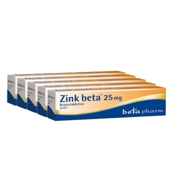 1 Brausetablette Zink beta® 25 enthält 69 mg Zinksulfat 1 H2O (entsprechend 25 mg Zink).